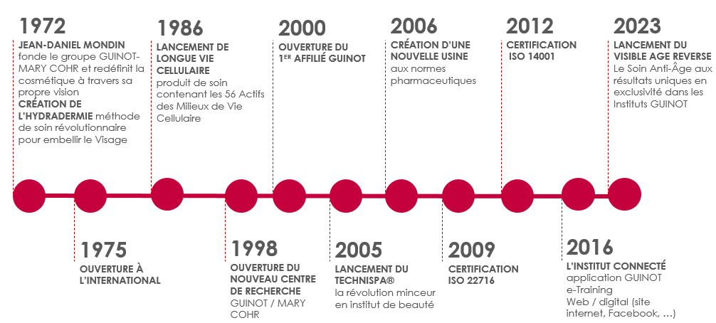 Le monde de la Beauté est en constante évolution. Guinot - Mary Cohr se distingue par sa capacité à anticiper les tendances et à imaginer des solutions novatrices. C’est ainsi que le groupe Guinot - Mary Cohr existe depuis plus de 52 ans.
